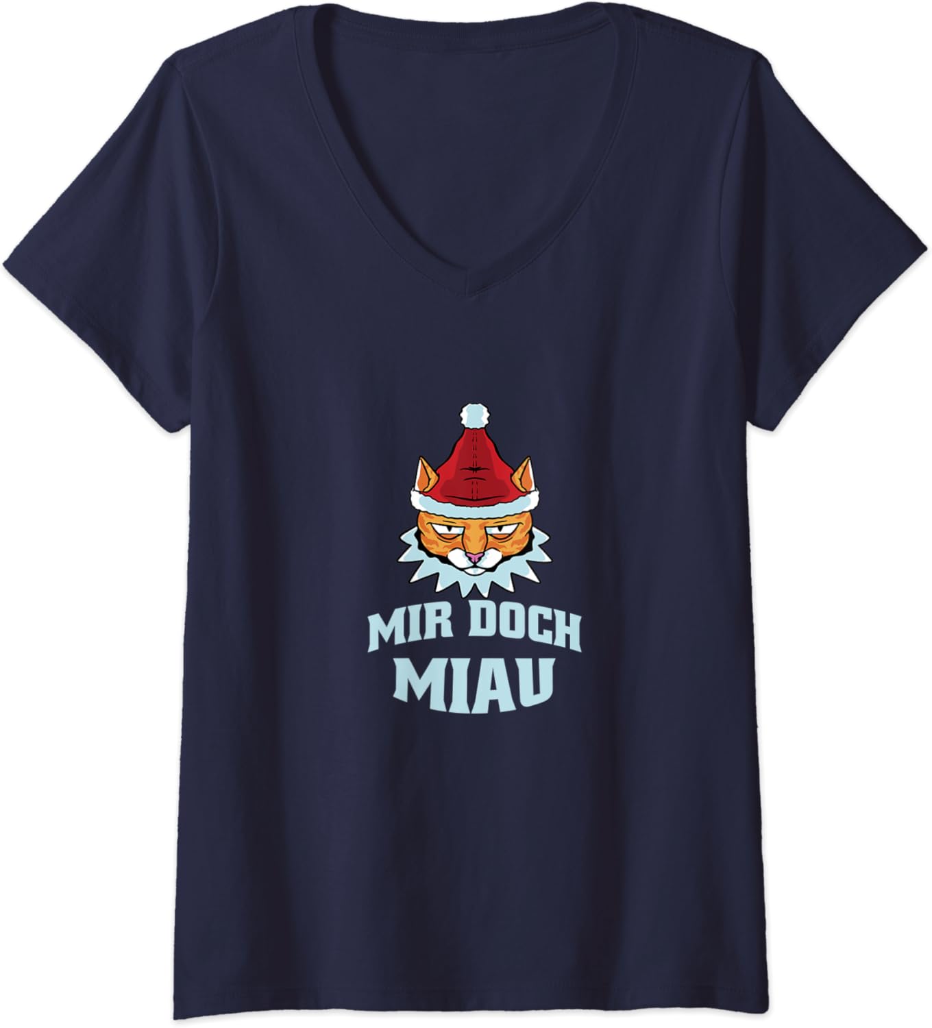 Women S Mir Doch Meau Cat Cat Slogan T Shirt With V Neck Amazon De Fashion